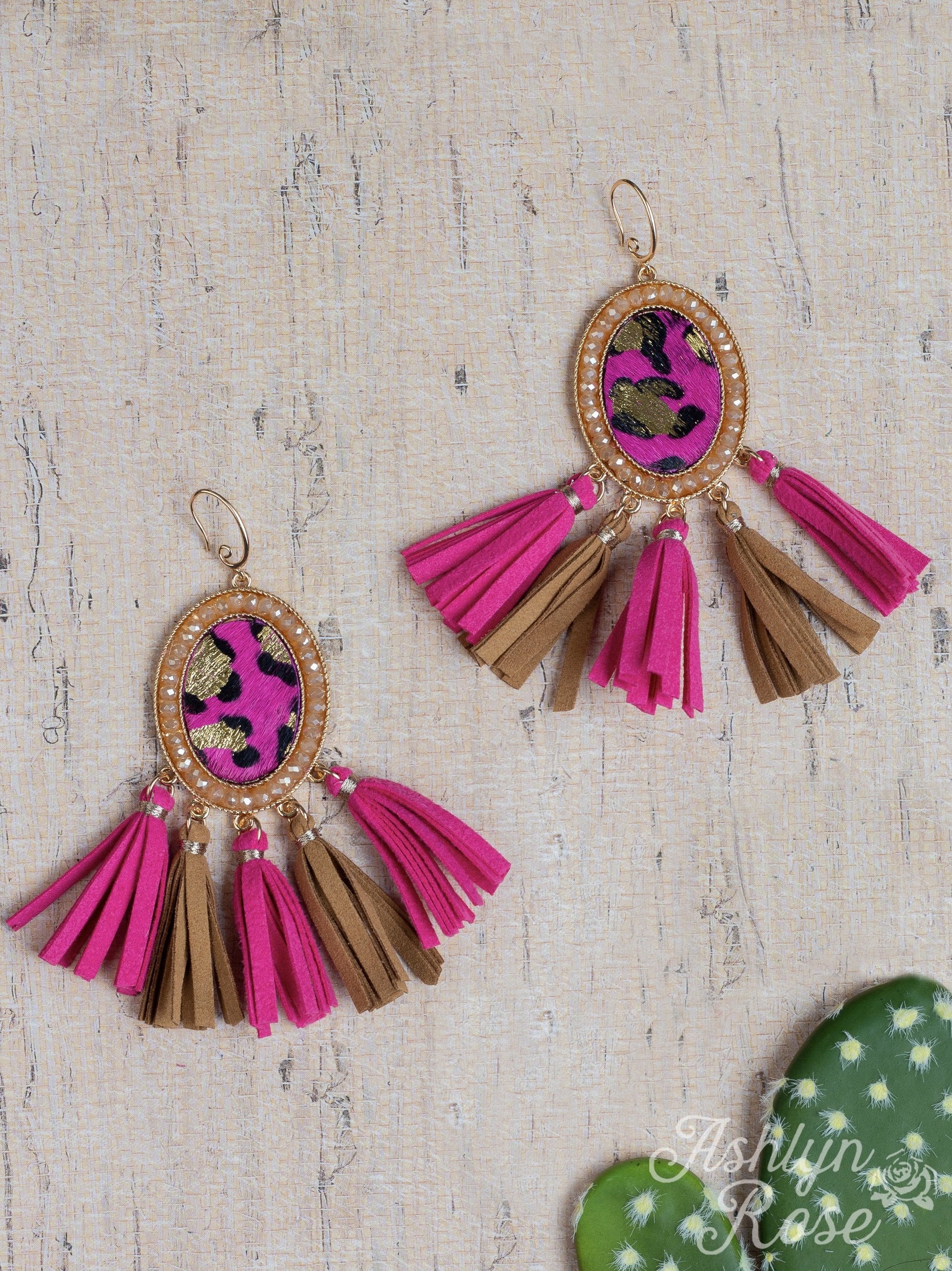 Airin' the Lungs Oval Earrings with Fringe, Fuchsia