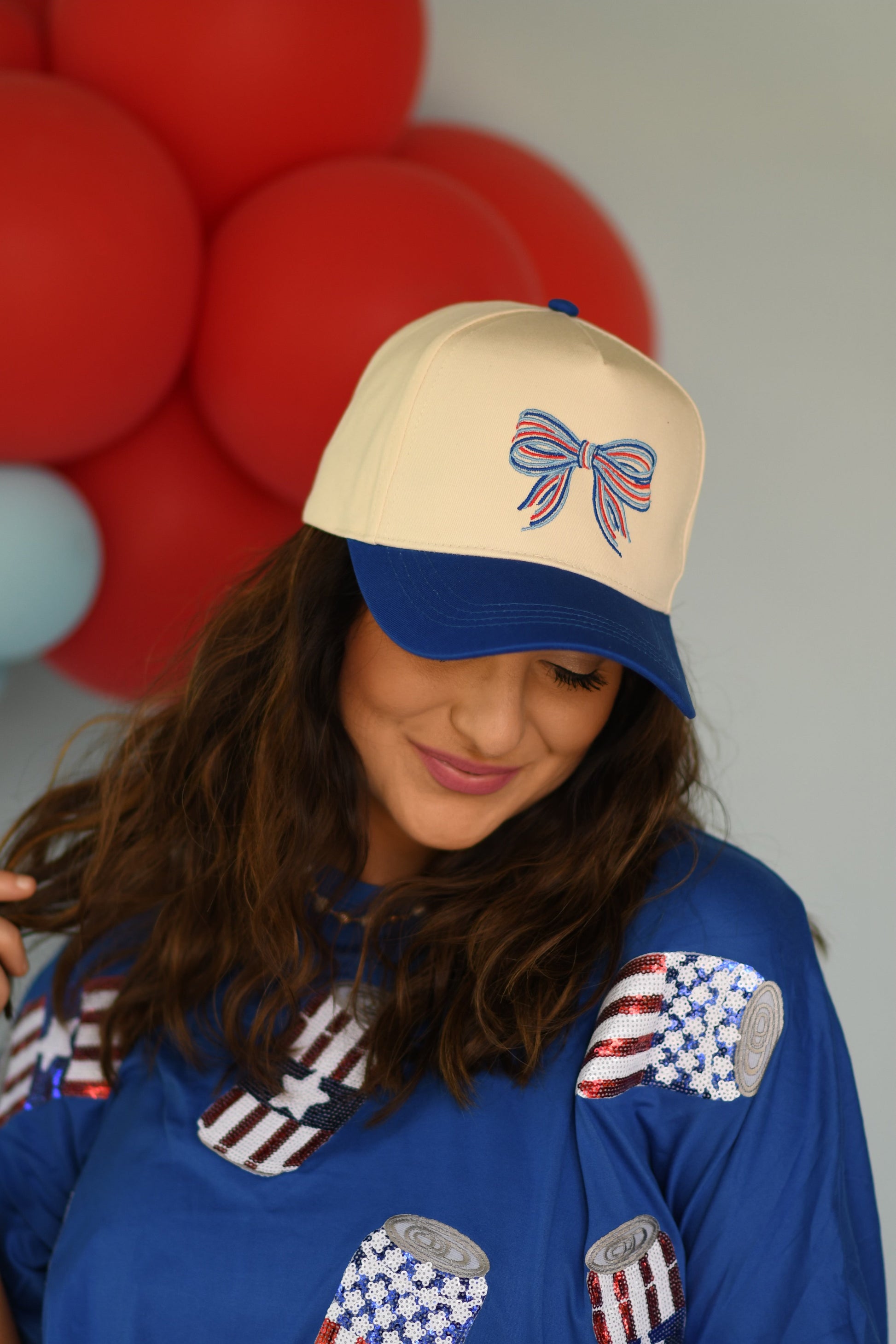 **SALE** Blue Patriotic embroidered Bow Hat