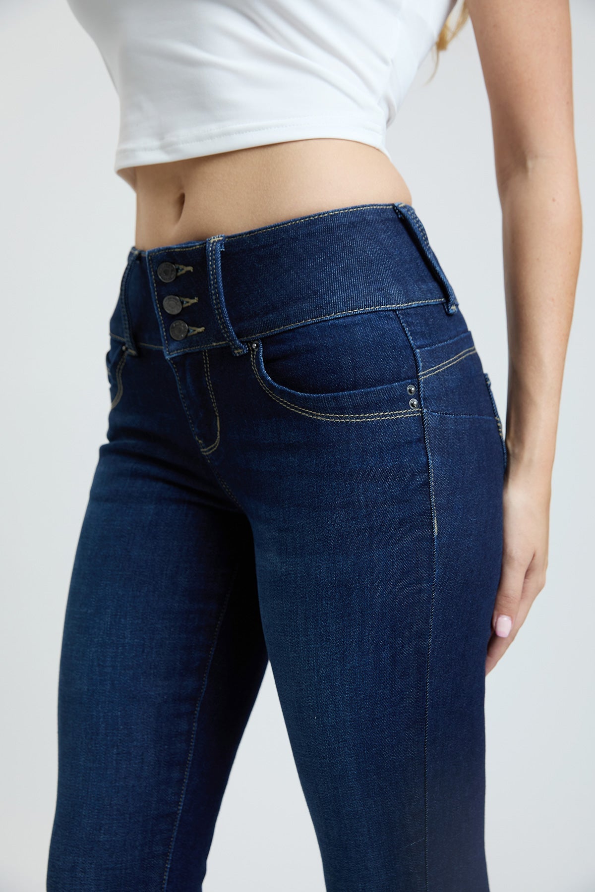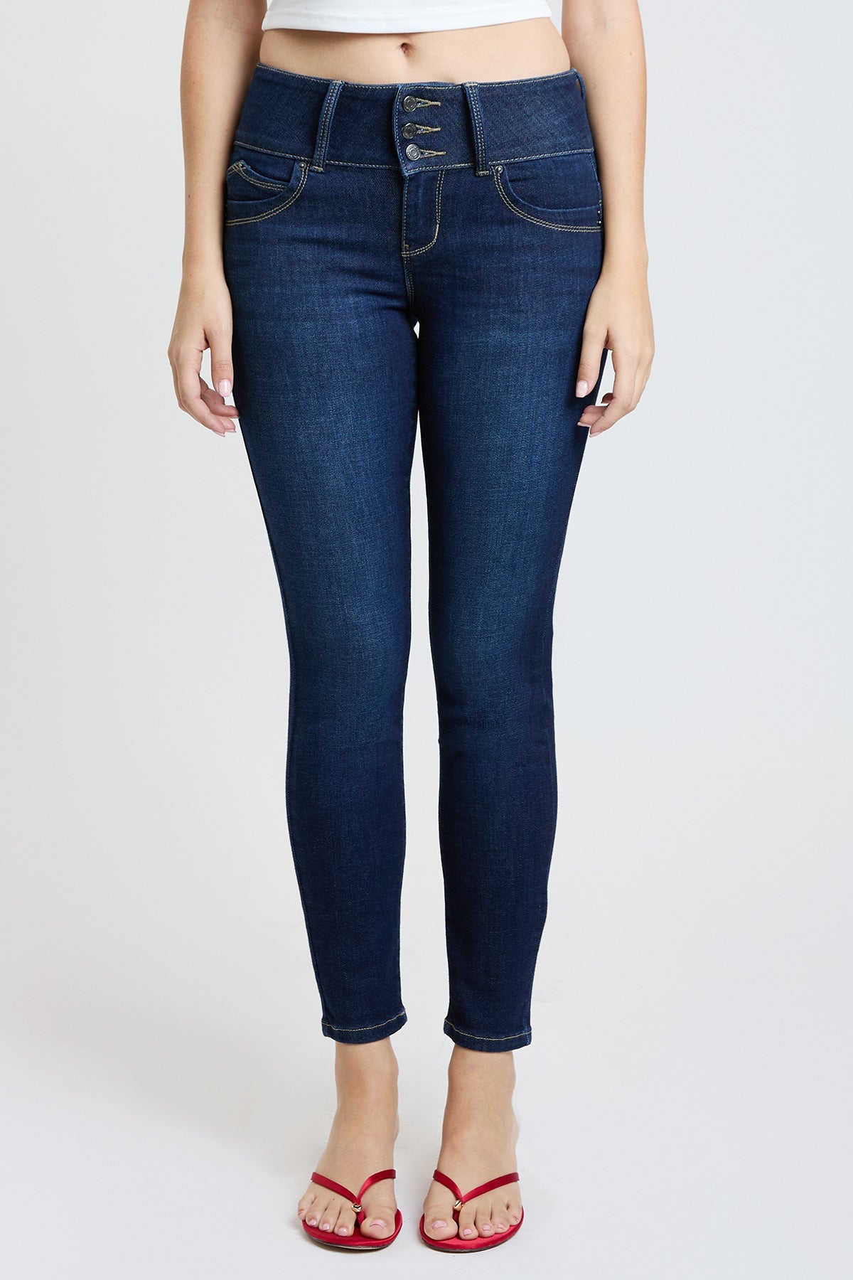 Women's Luxe Mid Rise 3-Button WannaBettaButt Skinny Jeans