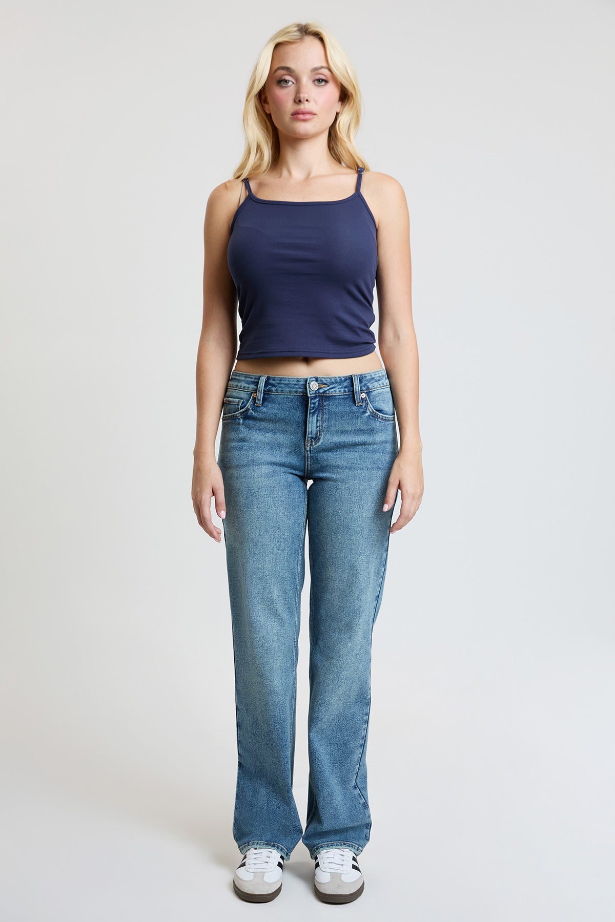 The Women's Maddy Mid Rise Straight Leg Jeans are a timeless staple designed for everyday wear. Featuring a classic straight-leg cut, a 5-pocket design, and a secure zipper and button fly, these jeans offer both style and functionality. The mid-rise fit provides comfort and versatility, making them easy to pair with any top. With a soft fabric blend and a hint of stretch, they ensure all-day ease without compromising on structure. Whether dressed up or worn casually, these jeans are a go-to for any occasion.