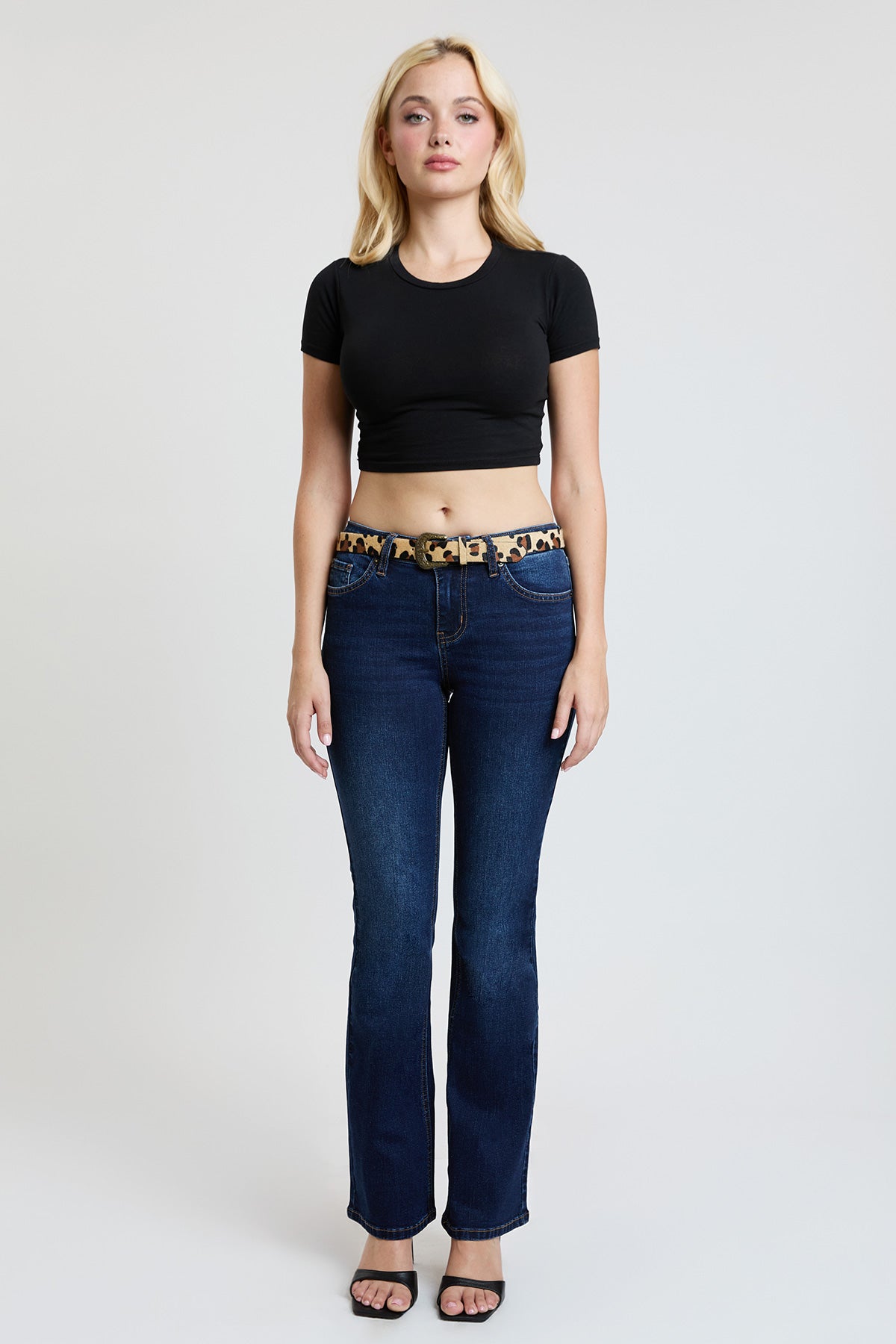 Women's Mid Rise Belted Bootcut Jeans