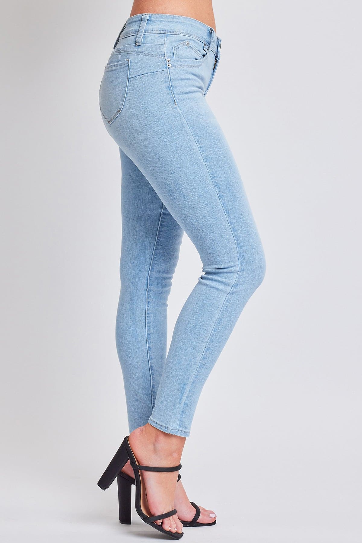 Perfectly made for the girl who lives in her skinnies! Our Women’s WannaBettaButt Mid-Rise Skinny Jean Made With Recycled Fibers is a big YMI fan-favorite. Made with lightweight and stretchy, yet durable recycled micro fibers, these slim-fit jeans provide you with the right amount of comfort and a slimming silhouette. Detailed with our signature heart-shaped butt stitching to highlight your natural curves and subtle whiskering to add a lived-in look - these denim pants are comfortable for all day wear and can easily be taken from day to night! Style with a cute graphic tee and tennis for a casual vibe or a cropped tank and heels for something sexier.