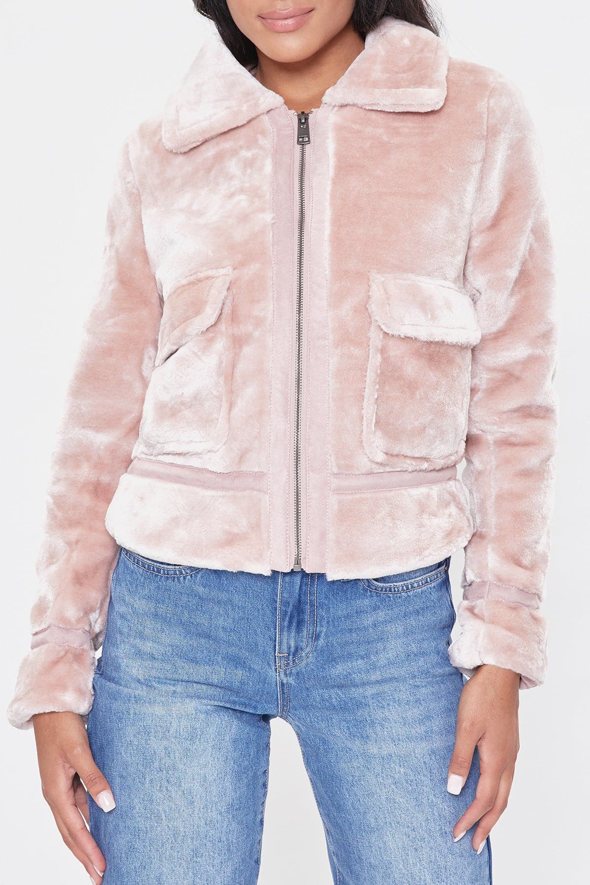 Get ready for the colder months in style with our women's faux fur jacket. Featuring faux fur, cropped long sleeves, two front pockets and a wide collar. Pair it with skinny jeans and a knotted tee for a look we love.