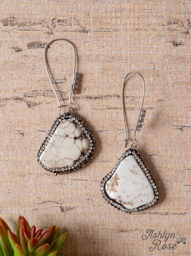 You Rock My Soul Rhinestone Cream Dangle Earrings